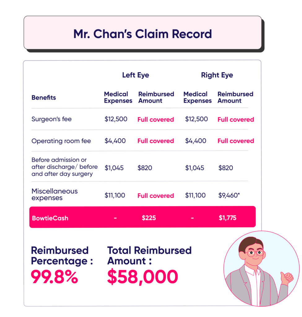Mr. Chan (pseudonym) insured his father (Papa Chan) with Bowtie VHIS – Flexi Plan (Regular). Around half a year after taking out the insurance, Papa Chan began to experience blurred vision. Later, Papa Chan was diagnosed with cataracts and needed immediate surgery. All shook up, Mr. Chan called Bowtie’s customer service specialists and was luckily offered timely assistance.
