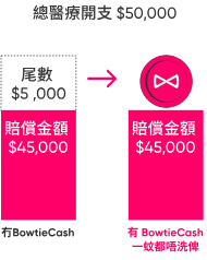 在4間公司中,Bowtie無索償獎賞開始時間最快(只需6個月),便可每月賺取相等於該月保費 8%的 BowtieCash,$1港元等於$1 BowtieCash。BowtieCash可以用於支付日後的索償超出保額的醫療開支,或換領指定身體檢查等健康服務。