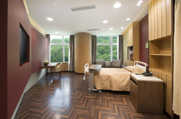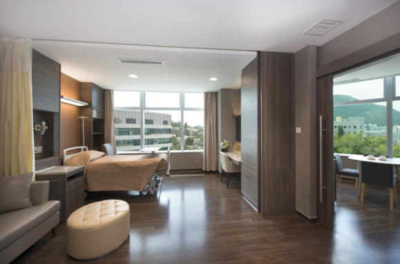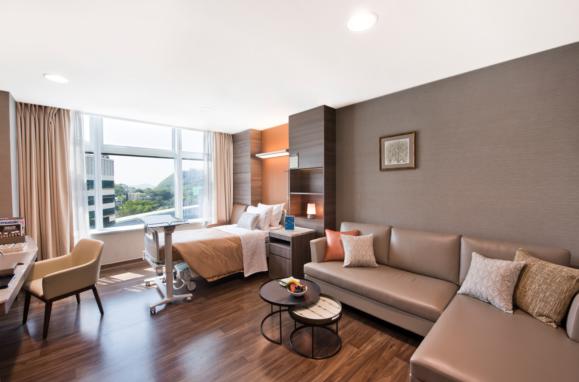 總統套房、帝皇套房以及豪華套房地方寬敞,設有落地玻璃以飽覽優美景觀。除了病床外,更有客廳區域,備有梳化及餐桌。另外,浴室地方非常闊落,更方便輪椅出入。