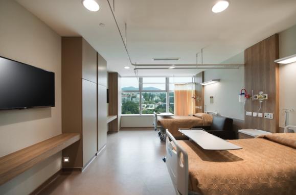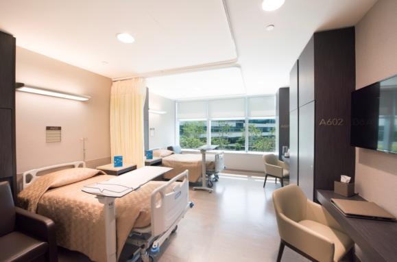 標準房設有兩張病床,房內的浴室及洗手間需要共用,房內的落地玻璃讓病人可飽覽開揚的景觀。