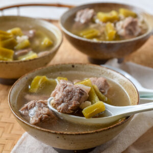 大頂苦瓜又叫雷公鑿或杜杬苦瓜,原產於江門杜杬。味道偏苦,但勝在皮薄肉質爽脆,因此十分適合用來簡單清炒或炆煮。