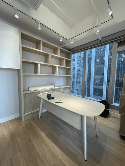 今次的寫字樓單位採用現代簡約設計,配有多格抽屜和收納櫃,方便公司儲藏大量文件、文房用品、電子設備及其他雜物,保持辦公室環境乾淨整潔。