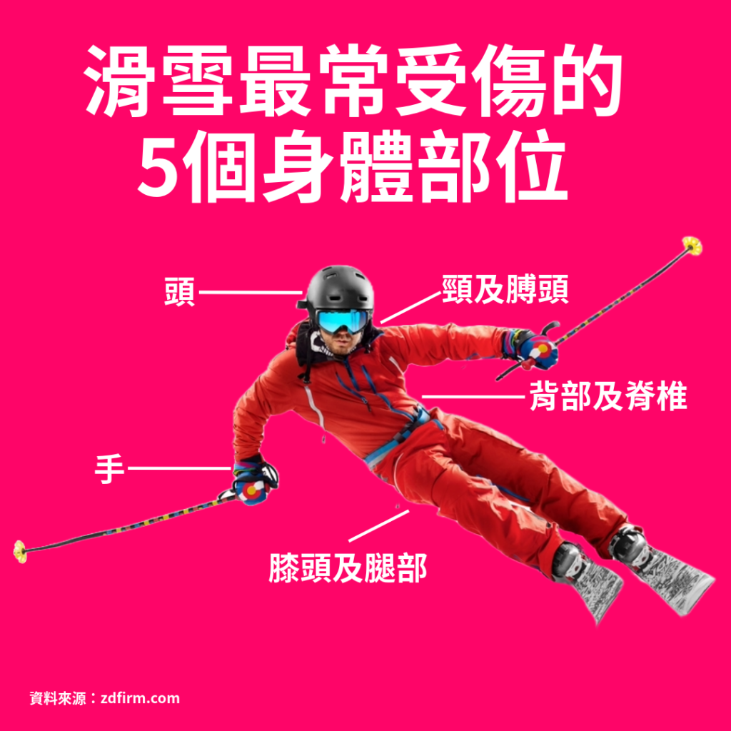 滑雪如不幸遇上意外,有機會造成以下傷害4:
