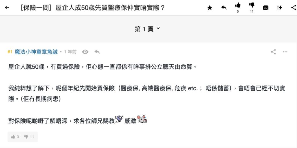 LIHKG買保險FAQs:醫保是必須品?年紀大/窮人應唔應該買?