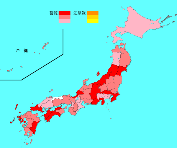 雖然現時日本的流感疫情比起在 2025 年 第 1 週( 2024 年 12 月 30 日 – 2025 年 1 月 5 日)的高峰期有所下降,但根據國立感染症研究所最新提供的流感疫情水平圖,顯示日本現時大部份地區的流感病情仍達「警報」級別,反映了日本流感疫情仍然持續爆發,大家亦應切勿掉以輕心。