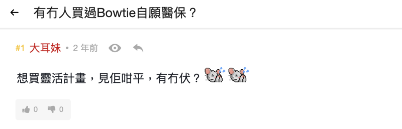 有網友對Bowtie人壽保感興趣,認為每月保費低,不知道是否可靠,又擔心人壽保障是否只保到65歲。