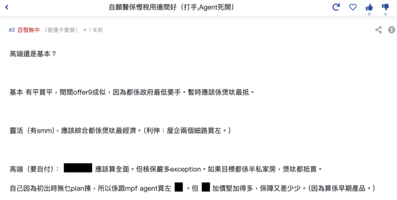 討論區上有網友指想買可扣稅的自願醫保,想知買邊間好。有精明的網友就指出Bowtie不論在基本(標準計劃)、靈活計劃及高端計劃 (Bowtie Pink) 都抵買;有網友指買Bowtie自願醫保除了可扣稅,更可節省保險中介佣金,而且更有無索償回贈計劃(BowtieCash) ;亦有網友指單純看自願醫保,Bowtie 的性價比最高。