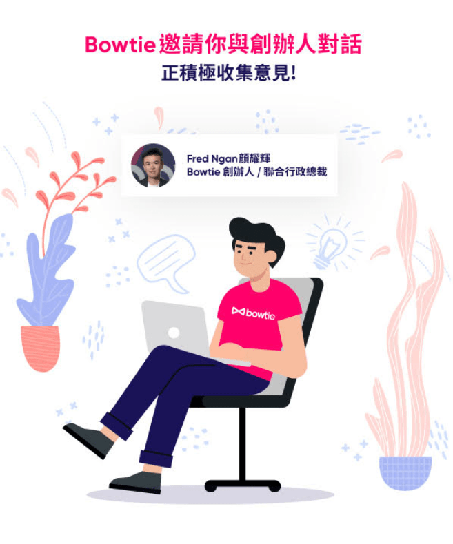 感謝各位的耐心與坦誠,我很希望為香港盡一分力,同時引領 Bowtie 繼續追尋其使命。我們自信能夠成為香港最好的虛擬保險公司,同時展現對用戶體驗的執着,藉此得到你們的信任。