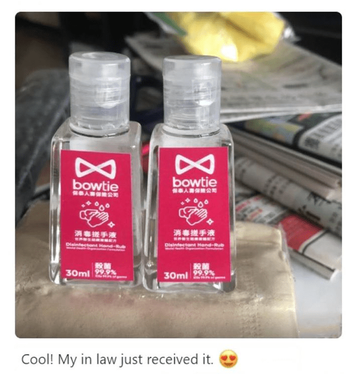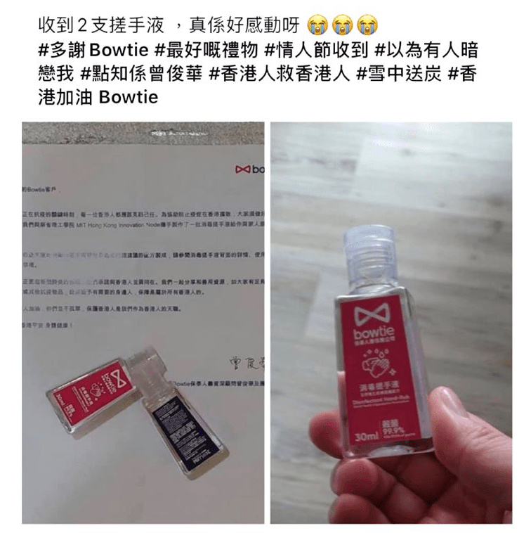 隨後 Bowtie 與一個重量級的支持者合作,他就是香港前財政司司長曾俊華先生。我們與曾先生攜手,推出了一連串的品牌推廣活動。不少客戶都記得我們的粉紅色煲呔標誌、在街頭派發的口罩,以及酒精搓手液等。
