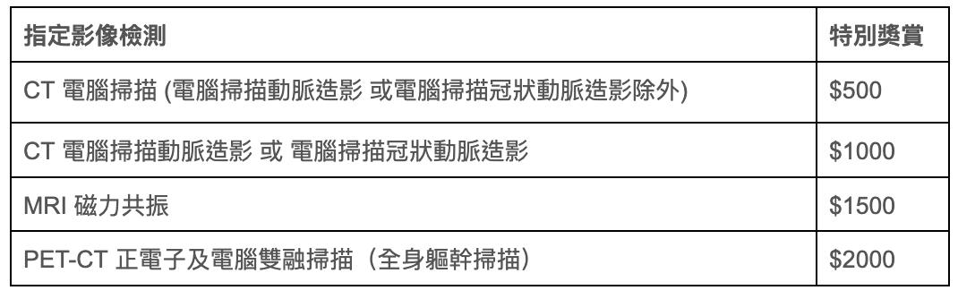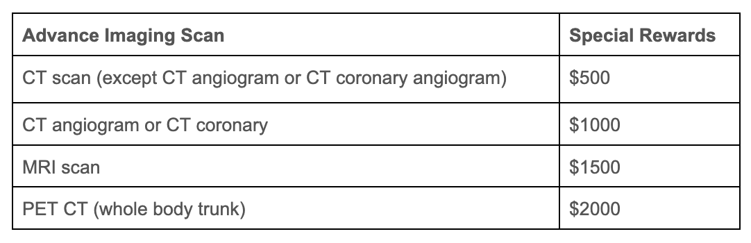 Each Bowtie VHIS insured customer arranged by Bowtie Health Specialist to complete an advanced imaging scan in the designated imaging center upon obtaining a claim pre-approval are entitled to receive the below supermarket cash voucher special rewards.